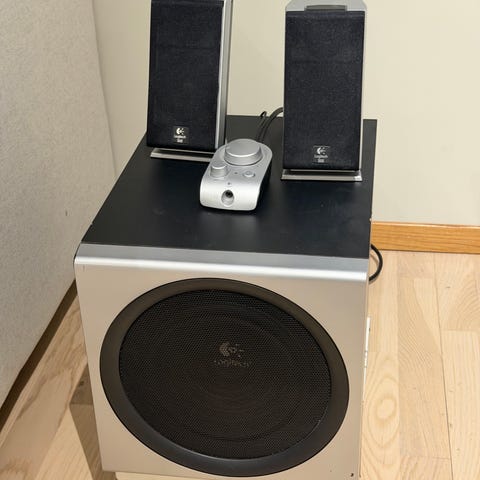 Logitech Z-2300 høyttalersystem med subwoofer. Systemet består av to satellitthøyttalere, en aktiv subwoofer og en kablet kontrollenhet med volum- og basskontroll. Høyttalerne er beregnet for bruk med PC eller annet lydutstyr med tilsvarende tilkobling. Egnet til hjemme- eller kontorbruk der det er behov for et kompakt 2.1-anlegg.