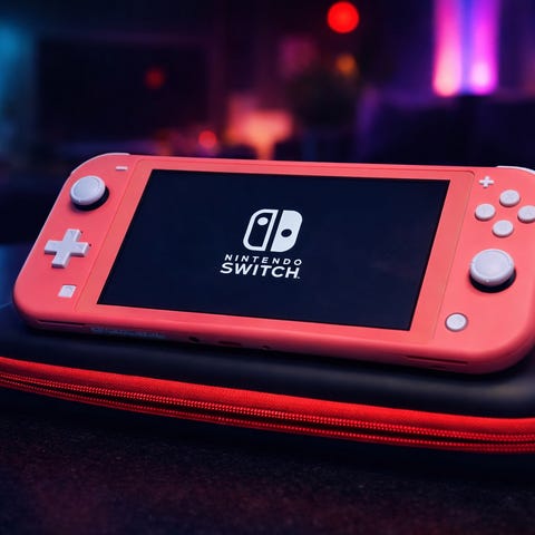 Selger en Nintendo Switch Lite spillkonsoll i fargen korall kjøpt i 2022.