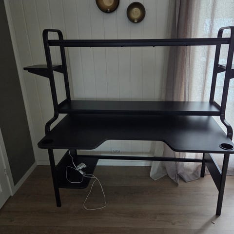 FREDDE, toppselgende gamingpult fra IKEA selges i svært god stand. Godt brukt, men uten synlige bruksmerker. Vært ekstremt fornøyd med pulten, men må nå selges pga. flytting. Veldig smarte funksjoner som gir naturlige plasser til PC, skjerm, kabler, høyttalere pluss ekstra hylleplass.