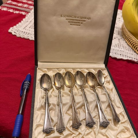 Ludvig Sæther bestikksett i etui. Sett med 3 skjeer. 6 gafler i NM-40