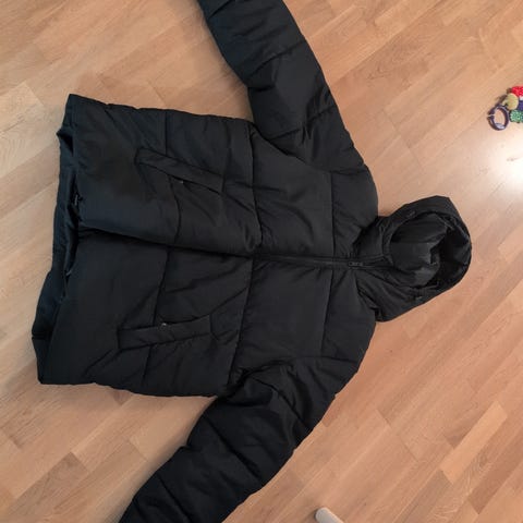 Cubus Puffer Jacket vinterjakke for herre i størrelse XL. Jakken er svart og laget i polyester. Modellen er en vattert pufferjakke med hette, sydd i brede horisontale paneler for jevn fordeling av isolasjonen. Ytterstoff og fôr er i polyester, noe som gjør jakken egnet til bruk på kalde dager. Passer som hverdagsjakke i vinterhalvåret og til generell utendørsbruk.