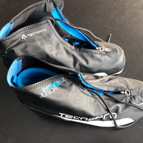 TecnoPro langrennsstøvler i svart med gule detaljer. Støvlene har snøring og glidelås i front, samt overtrekk som beskytter mot snø og fukt. Yttersålen er tilpasset langrennsbindinger. Egnet til bruk på ski for tur og trening.