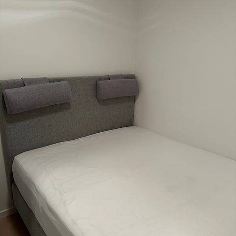 Selger IKEA Skårer 140x200cm rammemadrass. Komfortabel rammedrass av samme mål følger med! Merk at et av beinene er av en annen farge (sort) enn de andre, men det har ingen praktisk betydning.
