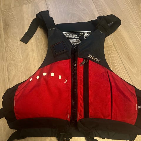 Gul flytevest i størrelse XL. Vesten er blå med sorte detaljer og har justerbare stropper i siden og over skuldrene for tilpasning. Egnet som flyteutstyr til bruk ved padling, seiling eller annen vannsport der en kompakt vest er ønskelig. Materiale er typisk skumfylt nylon/polyester (nøyaktig materiale ikke oppgitt på bildene).