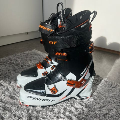 Skoene er av typen Dynafit Beast MS NC størrelse 29 - 29,5. Skoen er 33cm lang og innerstøvlene er ca. størrelse 44. Jeg bruker vanligvis størrelse 45 og har bred fot og den er litt trang.