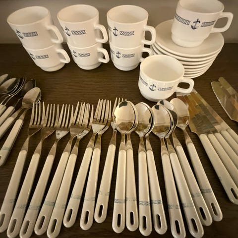 Maritimt servise Navigare Vivere Est, 8 kaffekopper med skål