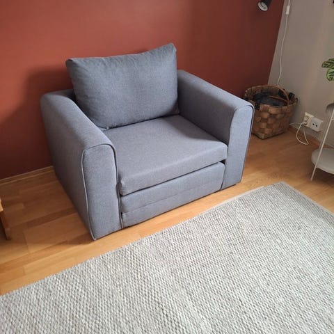 Praktisk ekstra soveplass og lenestol.