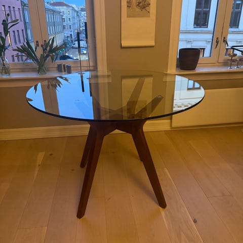 Bordet er i pen stand og ingen synlig slitasje (små merker/lett slitasje i glasset kan forekomme).