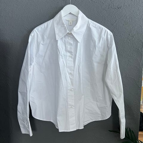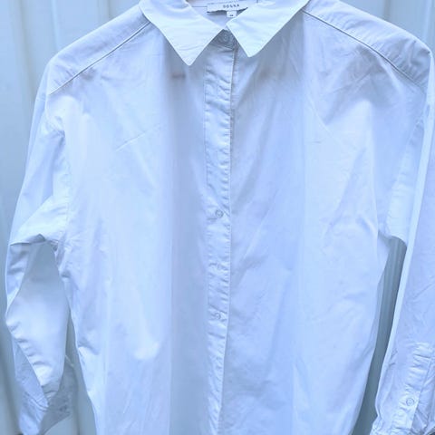 Tidløs modell i klassisk hvit med krage og knappestolpe i front. Skjorten har dekorative form sømmer/innsnitt med markerte sømdetaljer langs front og rygg som gir et mer unikt uttrykk.
