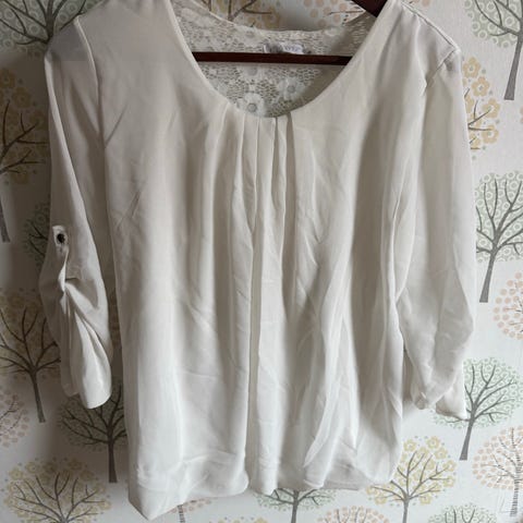 Pent brukt og uten bruksmerker. Ser mye penere ut når den er strøket!