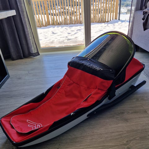 Selger en godt brukt, komplett Fjellpulken med sele,drag,varmeunderlag og vindskjerm.