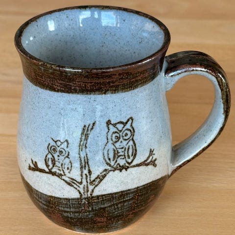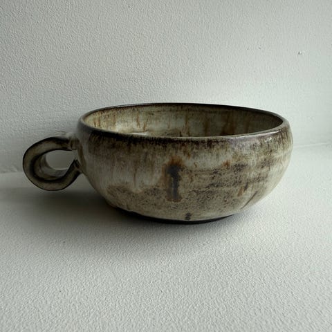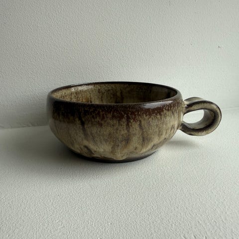 Dette er håndlaget samlekeramikk fra Merket Gnomalent, som er krus eller boller med dyrefigurer inni.