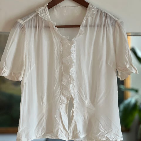 Vintage bluse i str 38 med dekorativ blondekrage.
