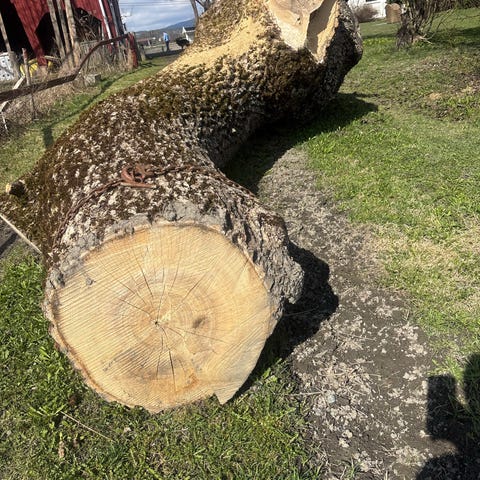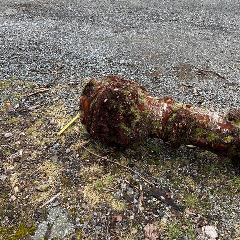 Tilstand: Objektet er profesjonelt tatt ned, sikret og lagret tørt innendørs. Den er delvis renset for å eksponere det intrikate mønsteret i vedmassen.