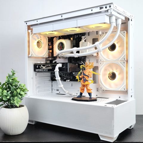 Selger en kraftig og gjennomført Gaming-PC i stilrent hvitt design med solid ytelse og flott ARGB-belysning.