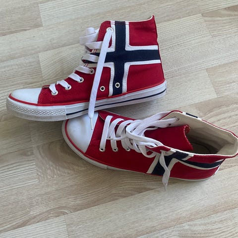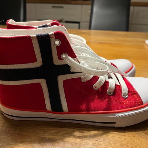 Skoene er litt små i str. ville jeg sagt. Dette er størrelse 40. Jeg bruker 40/41 til vanlig.