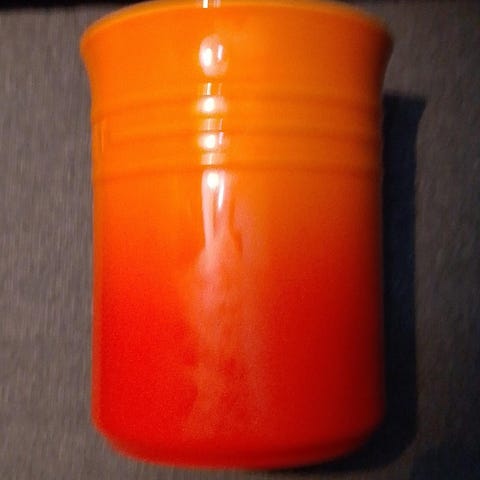 2 L, ikke brukt Le Creuset redskapskrukke i keramikk. 400,- Kr per stk. Farge rød og svart uten lokk, begge med Le Creuset-logo. Krukkene egner seg til oppbevaring av kjøkkenredskaper som sleiver, visper og spatler på kjøkkenbenken. Innvendig lys glasur gjør det enkelt å se innholdet og rengjøre krukkene. Passer på kjøkkenbenk eller i skap som praktisk oppbevaringsløsning for daglig bruk.