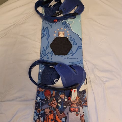 Burton snowboard i rød farge med grafisk motiv. Brettet har klassisk twintip-form og standard innfesting for bindinger. Passer til allround bruk i bakke og park. Lengden på brettet er ca 143cm. Må hentes. K2 merket foran på oppsiden er kunn et klistremerke som kan tas av.