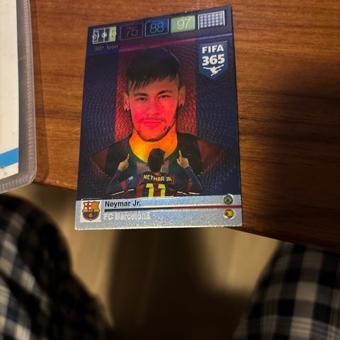 Panini FIFA 365 Attacking Trio samlekort med motiv av FC Barcelona-spillere. Kortet tilhører FIFA 365-serien fra Panini og viser et angrepstrio-motiv på forsiden, med spillerillustrasjon og kodefelt på baksiden. Egnet som samlekort for fotballinteresserte og til bruk i Panini FIFA 365-kortsamling.