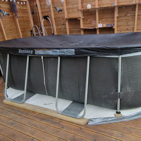 Følger med filterpumpe, stige, trekk og underlag som var i pakken med bassenget.