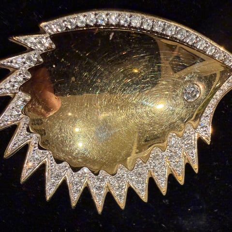Søt mus i gullfouble med kroppen full av Swarovskyperler.