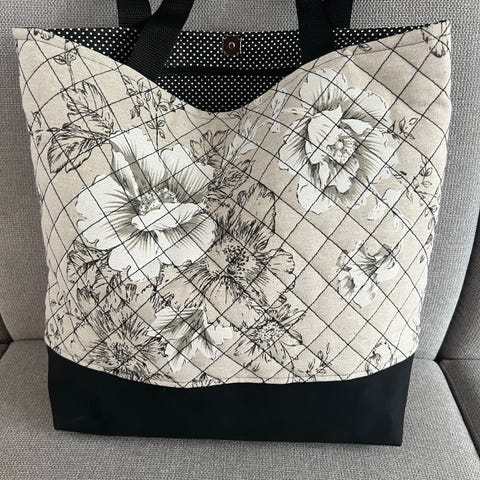 Brand new, handmade tote bag crafted from upcycled fabric. The material was once a curtain, giving this bag a unique and eco-friendly touch. Features handy inner pockets for easy organization. Perfect for everyday use, shopping, or as a stylish, one-of-a-kind accessory.