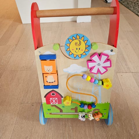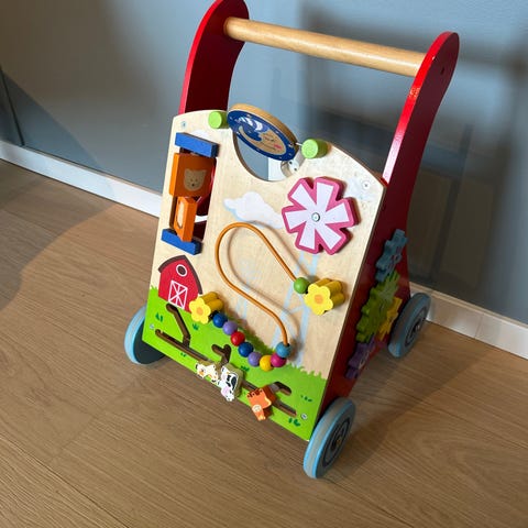 Gåvogn med masse ekstra leker på både framside og begge sidene.