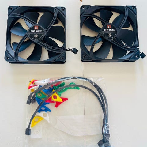 2 Corsair og 3 Noctua kabinettvifter 140 mm svart og brun