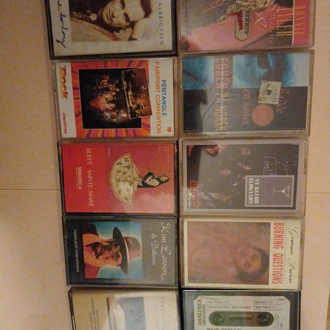 Samling med musikkassetter fra ulike artister og sjangre. Blant artistene som kan sees på bildene er blant annet Dolly Parton, Bob Marley & The Wailers, Eric Clapton, Whitney Houston, Shakin’ Stevens, Smokie, Uriah Heep, The Kinks og flere andre. Kassettbåndene er originale utgivelser med trykte omslag der dette følger med. Egner seg for avspilling på kassettspiller eller som samlerobjekter for musikkinteresserte. Antall kassetter og eksakte titler fremgår av bildene.