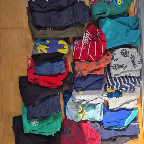 Stor klespakke med bukser, bodyer, gensere, strømpebukser, en ulldress, noen ullbodyer (med hull). Noen av plaggene er av eldre dato, men likevel fullt brukbare😊