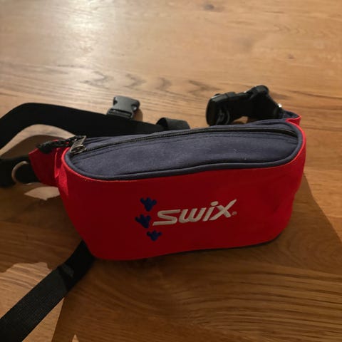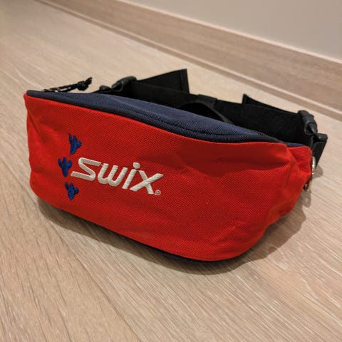 Swix trekkksele. Beltet har glidelåslomme for oppbevaring. Stropper og polstrede løkker i endene. Egnet til bruk på tur og aktivitet i bakken og sporet