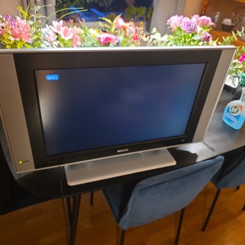 Gis bort pga. oppgradering, men vi tror den har mye mer å gi. En liten skade på plasten på baksiden, men skjermen virker for å fungere som den skal. Følger med fjernkontroll.