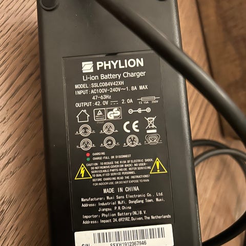 Batteri og lader til Jason Momma Urban 2023.