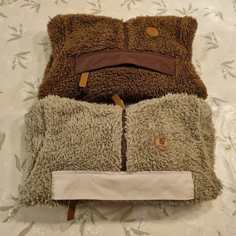 Pakke med fleece og genser i merinoull str. 80