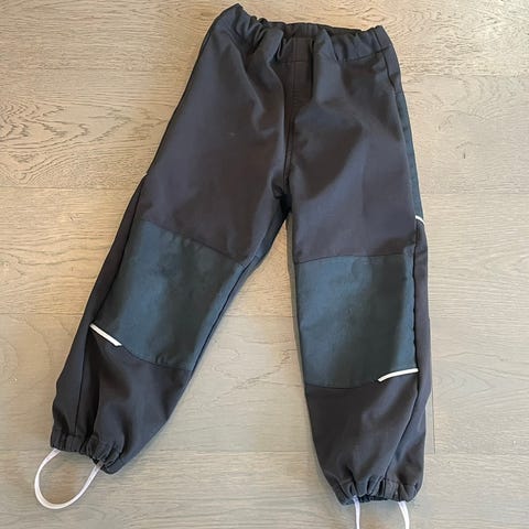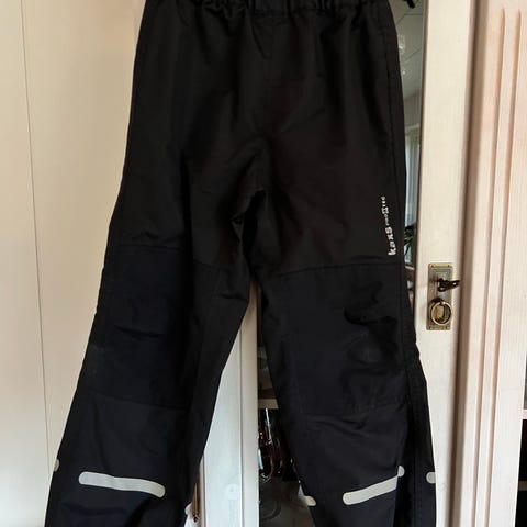 KappAhl Proxtec utebukse for barn i størrelse 134. Buksen er svart og er vann/vindtett. Modellen er unisex og har strikk nederst i bena samt fotstrikker for å holde buksen på plass. Refleksdetaljer på bena gir bedre synlighet. Egnet som ytterbukse til bruk på skole og utendørs lek.