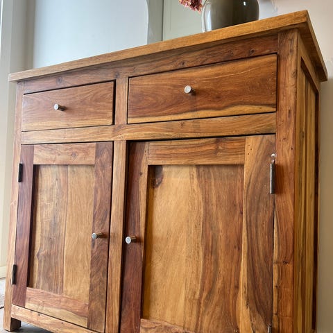 &Tradition skap i tre. Skapet har en skråstilt topplate, en skuff øverst og et skaprom med dør nederst. Utført i mørkbeiset treverk. . Egnet som oppbevaringsmøbel i for eksempel stue, gang eller soverom.