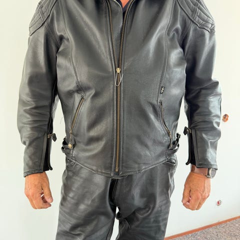 Se beskrivelser størrelser og priser under hvert bilde. Jakke og bukse i tekstil selges kun samlet. Kan selges for kr 4.000,- samlet
