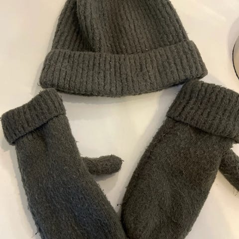 De svarte hanskene er i ull. og pulsvarmerne er i polyester , fine til både hverdag og pent bruk og fin stand.