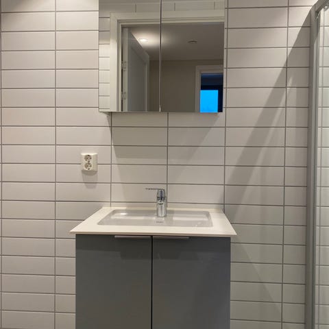– Hvit servant med ettgreps armatur