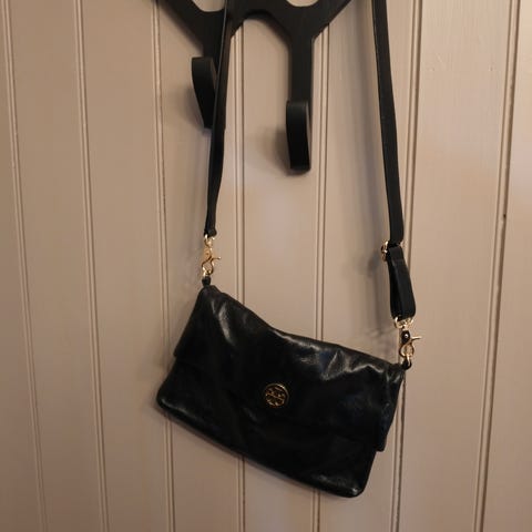 Detaljer: Gullfarget logo-detalj, magnetlås og fôret innside. Romslig nok til moderne smarttelefon, kortholder og nøkler.