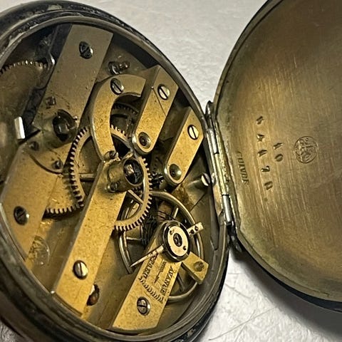 Dette uret er fabrikkert i Birmingham i det Herrens år 1917 (Se høgre linje)