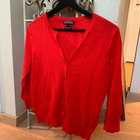Pent brukt cardigan med fine knapper i gullfarge, størrelse S. Inneholder blant annet kashmir og ull (se bilde for materialer). Fra Tommy Hilfiger😊