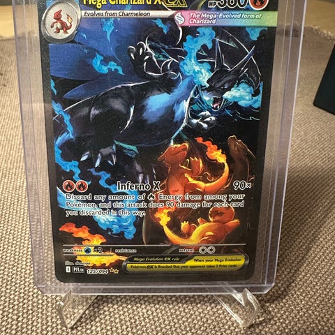 Selger et strøkent Mega Charizard X ex 125. Puttet rett i sleeve og toploader