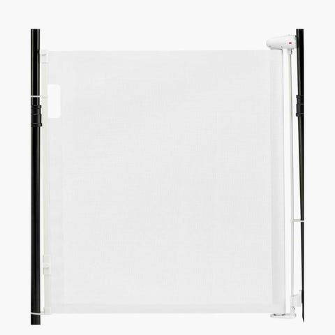 Biltema barnesikring grind i hvitlakkert metall. Grind med vertikale spiler, beregnet for sikring av åpninger der barn ferdes, for eksempel døråpninger eller trapper. Leveres i originalemballasje med monteringsdeler i esken, og er merket som barnesikringsgrind (child gate/barn grind). Egnet til innendørs bruk der man ønsker å begrense barns tilgang til bestemte rom eller områder.
