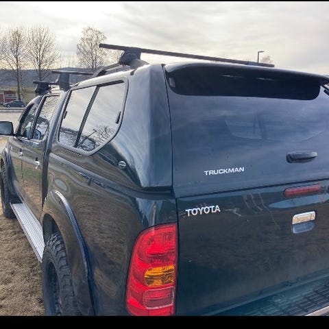 Hardtop pickup lokk i hvit farge med sidevinduer som kan åpnes. Lokk med bakluke og innvendig belysning. Egnet for montering på åpen lasteplan på pickup for værbeskyttelse og låsbar oppbevaring av last og utstyr.