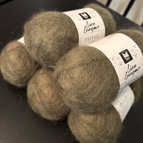 4 st nye nøster og en rest 12g fra Dale garn, Line Langmo Påfugl garn farge nr 0090.