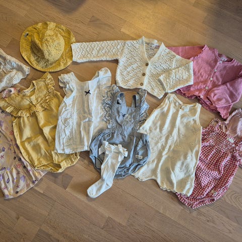 Klespakke med bomullsklær fra merker som Newbie, Marmar, Polarn O. Pyret, Pompdelux, Lindex, Finlayson, H&M. Se nærmere beskrivelse på bildene.