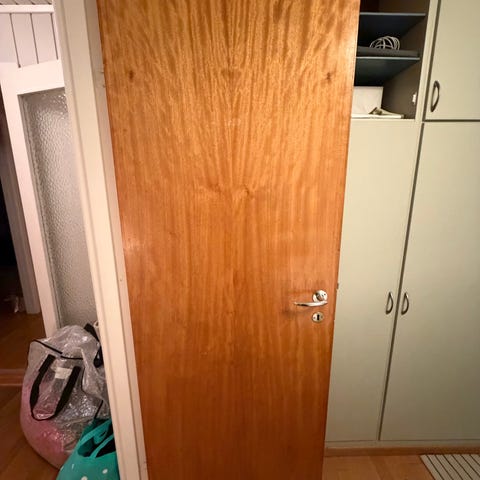 2 stk innerdør i Eik med karm. Originale fra 60-70–tallet. 210 *80, ferdig demontert.