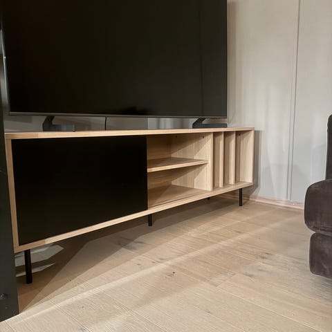 WOODSTORY TV-benk Heltre Ask, gråoljet