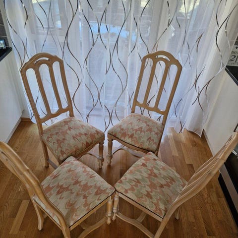 Forelsket meg i stolene og kjøpte de helt i starten av oppussingsprosjektet mitt, men har gjennom prosjektet landet på at de dessverre ikke passer helt inn allikevel. Håper de kan få noen eiere som er like begeistret for de som jeg er!